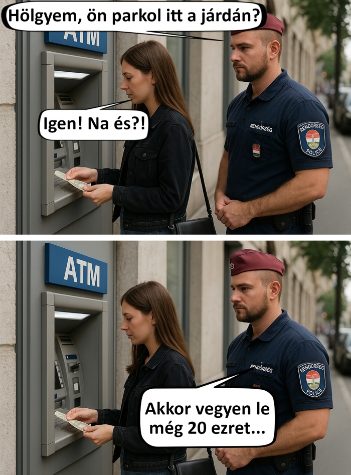 (5) Tegnap dugóba kerültem az autópályán, és az előttem lévő luxusautó sofőrje egyszer csak úgy döntött, hogy a leállósávban kikerüli a sort, de pechjére állt egy rendőrautó is a dugóban. Azonnal megállították és megbüntették.