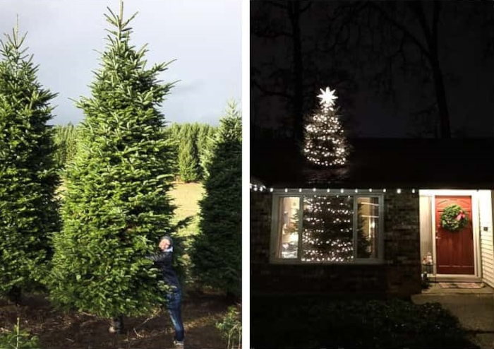 6. Tavaly karácsonykor a férjem egy hat méteres fenyőfával állított haza, ami természetesen nem fért be a házba. A férjem nem esett kétségbe és kettéfűrészelte a fát, így az alját bent a házban, a tetejét pedig a tetőn helyezte el.