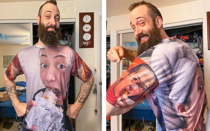 13. A férjem csináltatott magának egy pólót olyan nem túl előnyös fotókból, amiken én vagyok látható zabálás közben.