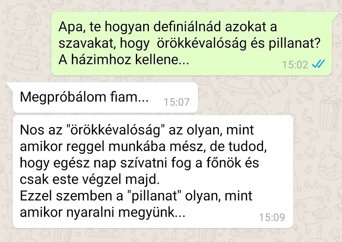 (14) Az apa egy érzékletes hasonlattal élt a szavak jelentésének az elmagyarázásához.