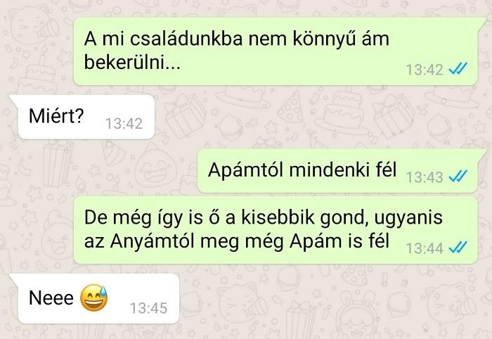 A családon belüli kommunikációnak is a meghatározó, már-már alapvető eszközeivé váltak az okostelefonok és egyéb hasonló kütyük az utóbbi tizenegynéhány évben, hiszen az azokon elérhető üzenetküldő alkalmazásokat a családtagok is előszeretettel használják egymás közötti csevegésre. Ideálisan csak azokban az esetekben, amikor éppen nincs lehetőségük vagy alkalmuk élőben beszélni, hiszen a személyes kommunikációt nem helyettesíthetik vagy pótolhatják teljes egészében. Viszont amikor a családtagok nem tartózkodnak otthon, mert ki a munkahelyén, ki pedig az iskolában van, a napközbeni azonnali csevejek lebonyolítására teljesen alkalmasak. És arra is, hogy egy-egy mókás üzenetváltást megőrizzenek az utókornak.
