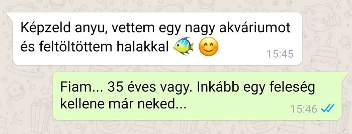 (12) Az édesanya az akváriumban úszkáló díszhalak helyett inkább már az unokákat szeretné látni fel-alá rohangálni.