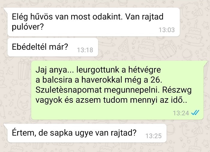 (5) Az édesanyák minden körülmények között szeretik felhívni a gyerekeik figyelmét a réteges öltözködés fontosságára.