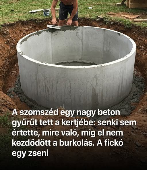 A szomszéd egy nagy betongyűrűt tett a kertjébe: senki sem értette, mire való, míg el nem kezdődött a burkolás. A fickó egy zseni
