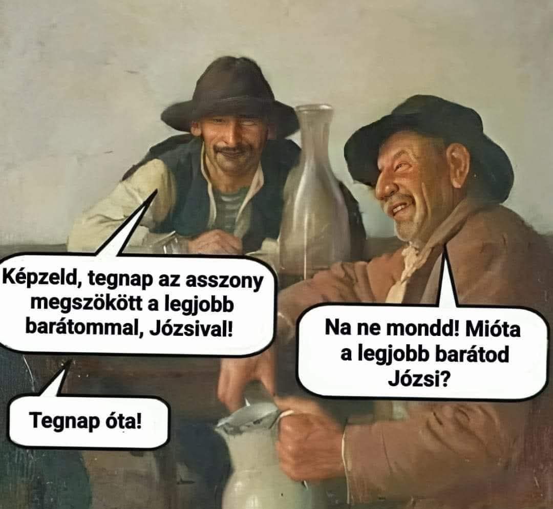 – Anti, átveszem az ügyeletet addig, szaladj haza, mert a feleséged éppen lefeküdt a legjobb barátoddal.